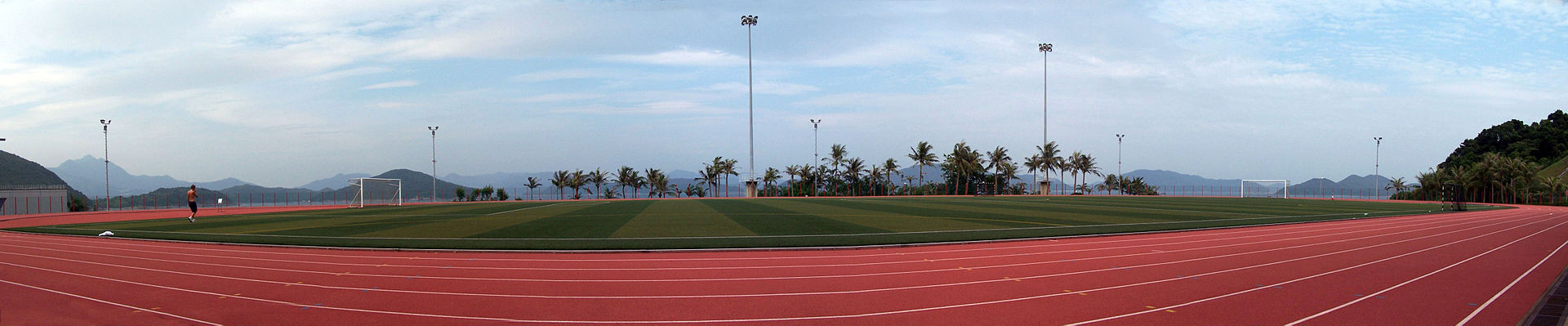 在田徑跑道中央,一般都植有草地,作為擲項(xiàng)等田賽或作足球場之用。